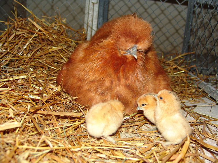 Silkeshönor brukar vara goda mödrar. De ruvar oftast villigt och pålitligt och tar oftast väl hand om sina små.