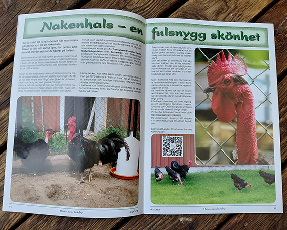 Här ser du ett utdrag från tidningen Höns som hobbys rasspecial om den ovanliga rasen stor Nakenhals. Där kan du till exempel läsa: